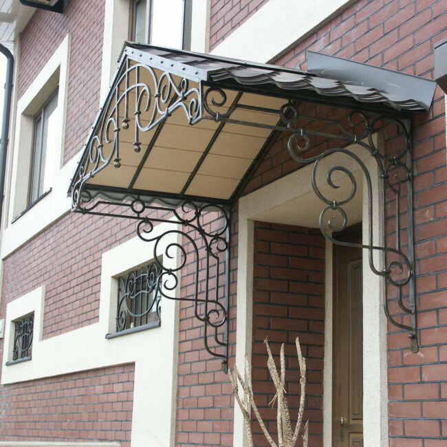 Металлические козырьки над входом в здание или воротами не только защищают от дождя и снега, но и придают входной группе завершенный, целостный вид. Кроме того, они могут стать полноценным декоративным элементом: например, изысканные кованые конструкции придадут изюминку фасаду здания. Варианты конструктивного и дизайнерского исполнения тут практически ничем не ограничены: специалисты компании A.B.E. Metal могут изготовить из металла козырьки любого вида и размера. При этом мы предлагаем одни из самых выгодных условий в СПб – как по цене, так и по спектру сопутствующих услуг.